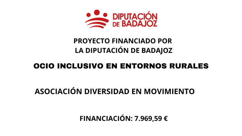 Subvención de 7.969,59 € de Diputación de Badajoz para el proyecto de Ocio Inclusivo en Entornos Rurales"